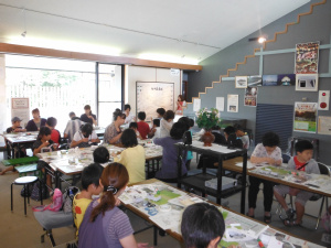 平成25年8月9日(金曜日)、安田城跡資料館で児童と保護者32人が、江戸時代に富山城二ノ丸にあった二階櫓御門のペーパークラフトを作製しました。
