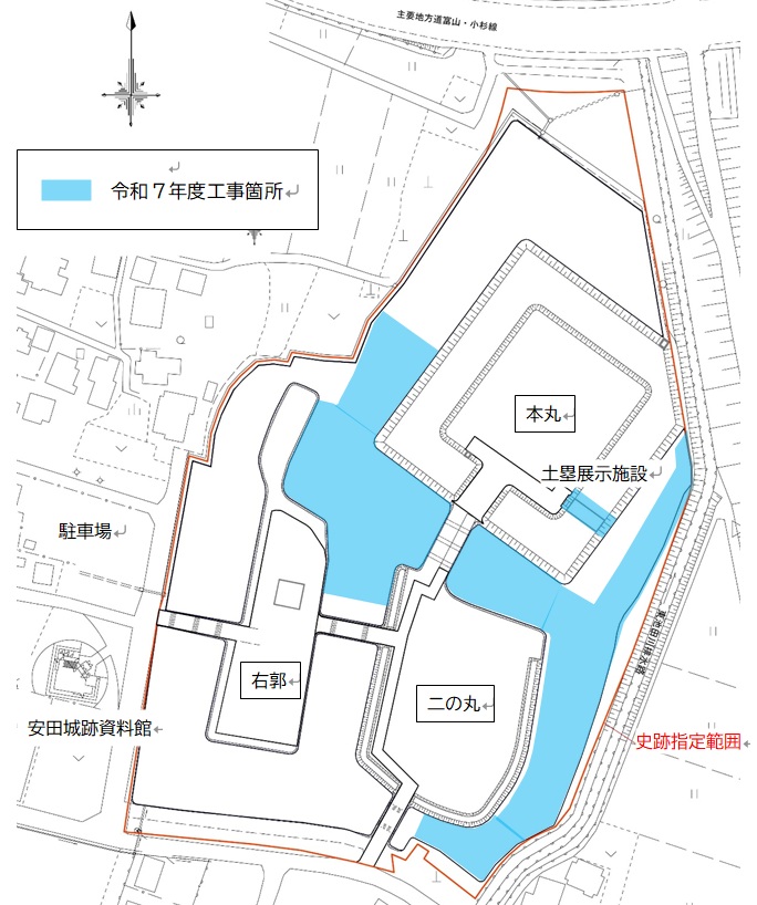 内 容 堀のしゅんせつ(泥の除去)・護岸改修、土塁展示施設改修
