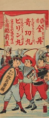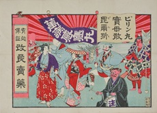 また、明治時代以降は、鼓笛隊が描かれた引札・チラシが見られるようになります。富山の売薬業に限らず、新しく設立された製薬会社や、改良された薬品を売り込むため、音を伴った宣伝が効果を発揮していたことがチラシに表れています。