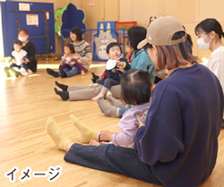 保育所(園)・認定こども園などに通っていないお子さんと保護者を対象に、親子の交流を深める遊びや子育ての仲間作りのお手伝い、子育ての悩み相談などを行っています。