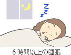 睡眠時間は長すぎても短すぎても健康を害する原因となります。朝目覚めたときに感じる休まった感覚(睡眠休養感)は良い睡眠の目安となります。睡眠時間を確保し、睡眠休養感を高める工夫を日常生活に取り入れましょう。