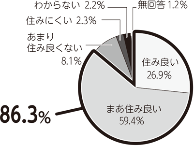 「まあ住み良い」という回答が59.4%と最も高く、「住み良い」の26.9%と合わせると86.3%となっています。