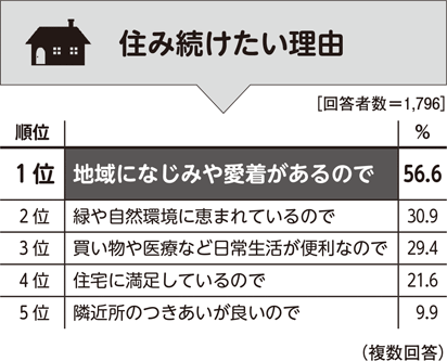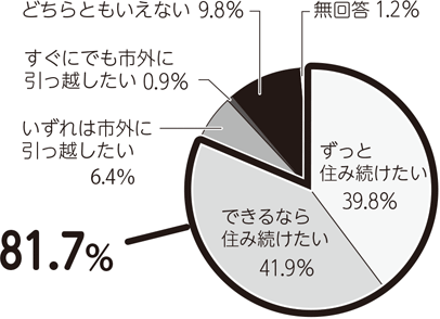 「できるなら住み続けたい」という回答が41.9%と最も高く、「ずっと住み続けたい」の39.8%と合わせると、81.7%となっています。