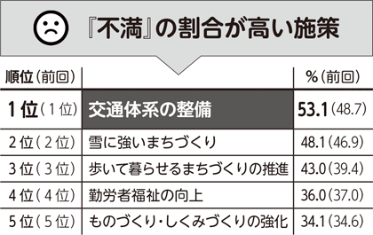今年5~6月に、市民の方を対象に、本市の施策への満足度や市政への要望などを調査したものです。