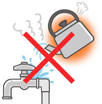 急に熱い湯をかけると水道管や蛇口が破裂することがありますので、注意してください。