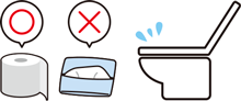 トイレにトイレットペーパー以外の物(衛生用品、生理用品、オムツ、衣類、タオル、食品の包装など)を絶対に流さないでください。