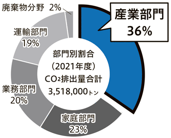 産業部門(工場や事業所内の排出量)が大きな割合を占めています。