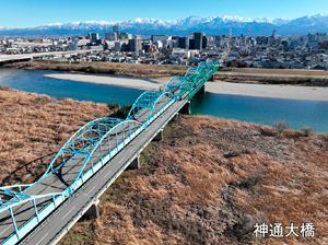 八幡橋と神通大橋(上流側)の架替に向けた物件移転補償や、上野橋、観光橋などの架替・補修工事を引き続き実施します。