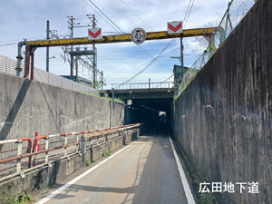 広田地下道の大雨による冠水時に車両の誤進入を防止するため、交通遮断機を設置します。
