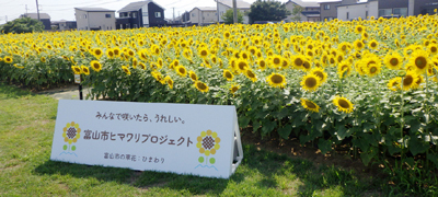 地域の一体感を醸成するため、本市の草花であるヒマワリを用いて、公園予定地での市民協働による植栽や富山駅周辺、中心商店街エリアでの生花などの展示、ロゴマークを用いたプロモーションなどを実施します。